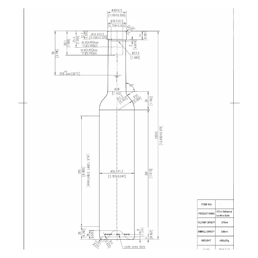- Botella delgada de 55,5 mm que se adapta a un estante de vinos estándar, la altura de 330 mm optimiza la eficiencia de carga logística