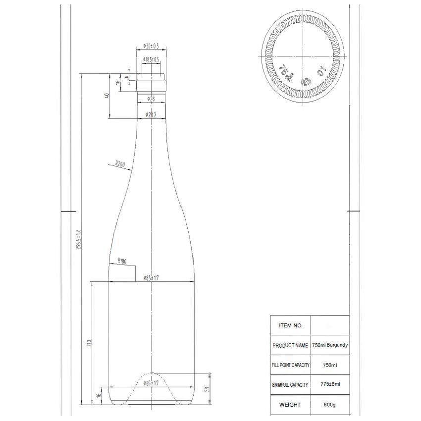 - Material de vidrio sódico-cálcico: Equilibrio entre alta transmitancia de luz y resistencia al impacto, en línea con los estándares de seguridad de grado alimenticio, para evitar que los rayos ultravioleta deterioren la calidad del vino.