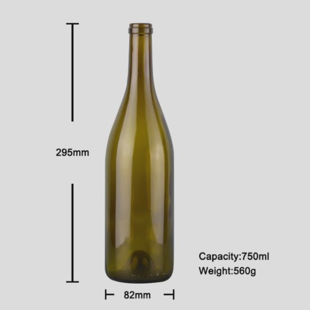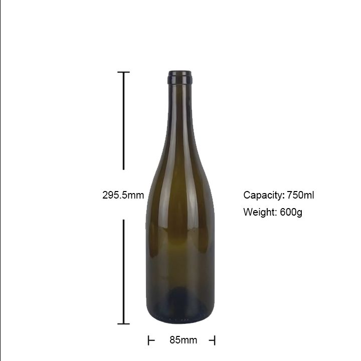 - Botella clásica de Borgoña con vidrio con protección UV, transmitancia de luz ≤38% que retrasa eficazmente la fotooxidación del vino.